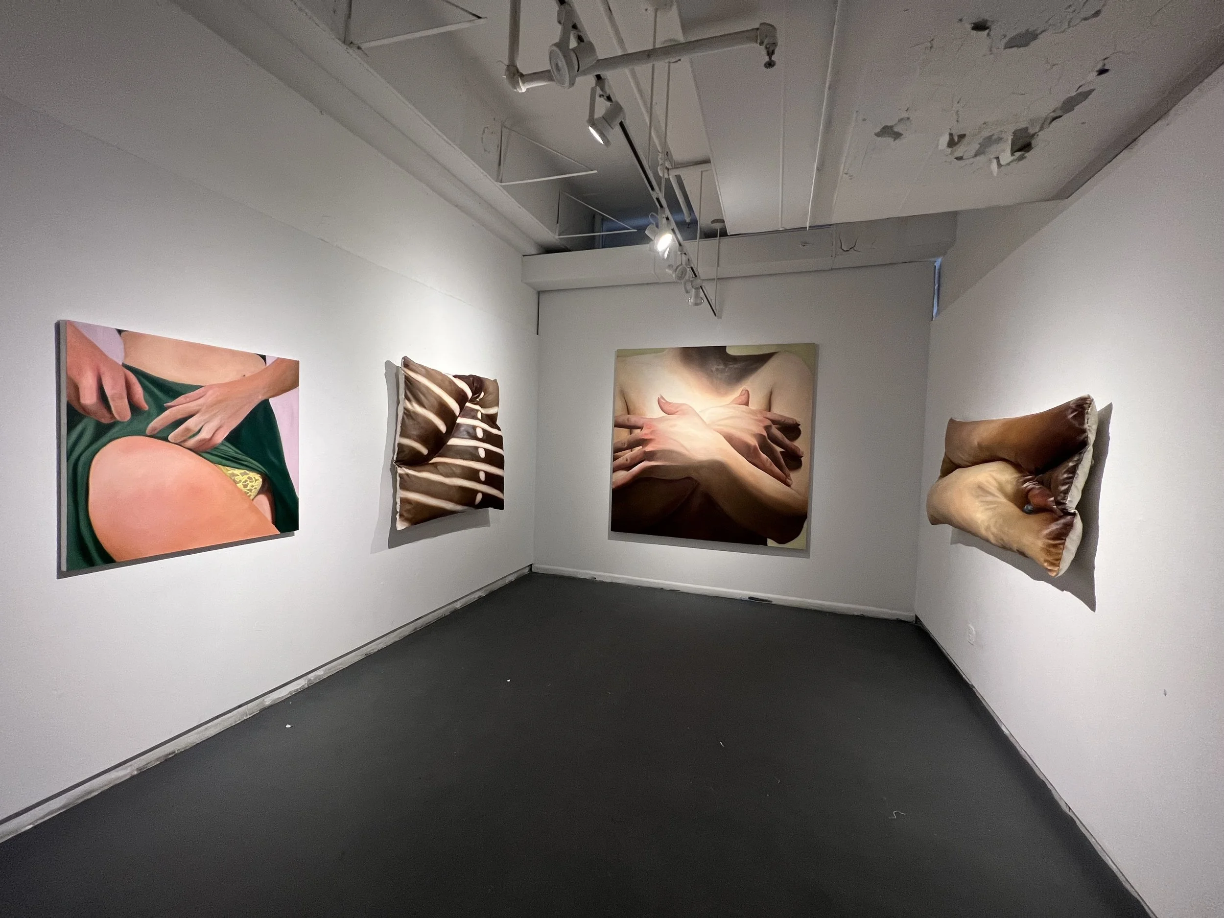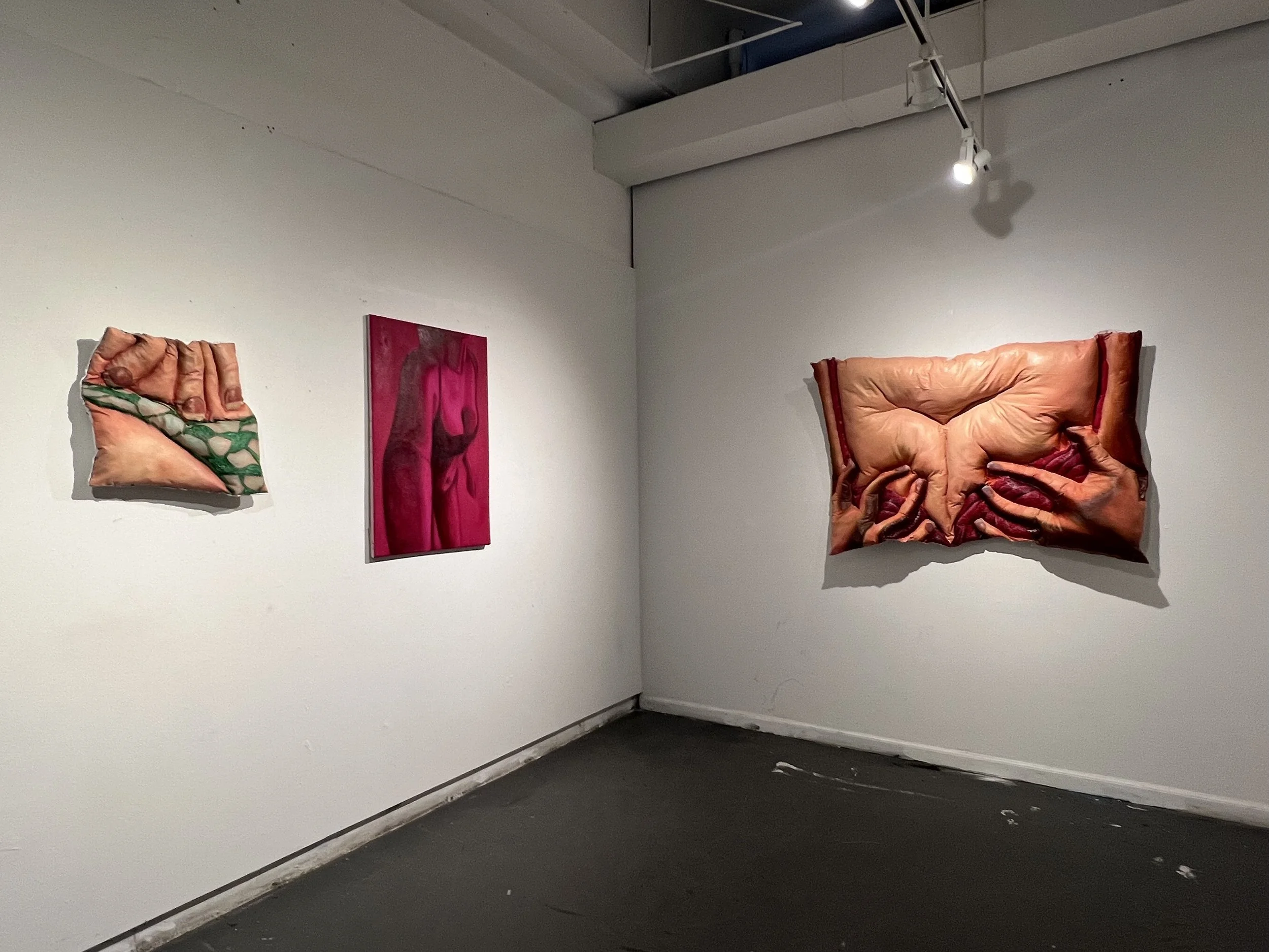 Installation View @ Sickler Gallery, Syracuse University. (Left to Right: “Propriety”, “Allegory of Desire”, & “Sweet Embrace”) Syracuse, NY. 2023.